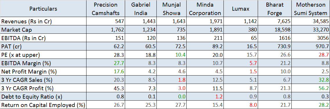- PCAM has leadership across the peer group on Margins. It is also #2 for Sales & Profit growth. Also on ROCE, it is among the leaders. These are impressive ratios.