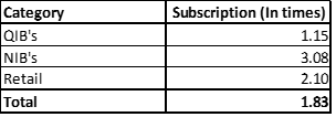 - There was a tremendous demand for the IPO and the category wise subscription was: