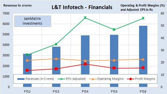 - LTECH had revenues and profits of Rs 6,143 crores and Rs 922 cr. resp. in FY16.