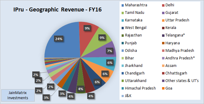 - IPRU had revenues and profits of Rs 18,999 cr. and Rs 1,653 cr. resp. in FY16. Its revenue and PAT have grown 8.1% and 4.5% CAGR from FY12 to FY16.