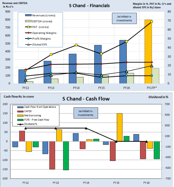 • FY17 revenues is a projection of 9M FY17 financials, assuming 75% comes in Q4; and adding financials of Chhaya Prakashini. Thus revenue and PAT growth are good.