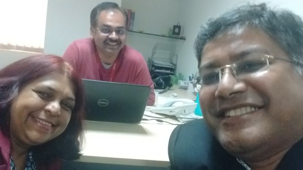 With Mr Sudev Alampalli, the India Operations Head (center) of Snuvik Technologies, Ms Reena Serrao, a colleague (left) and me.