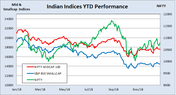 - The Indian markets in 2018 were affected by various domestic and international factors.