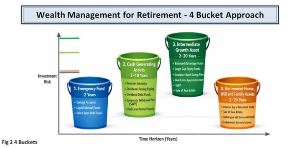 Retirement is an important goal during work life. The image of a relaxed day schedule, no monetary pressures and more time for your favorite hobbies, seems so attractive. In early career, it seems so far away, time wise, that planning for Retirement seems like a waste of time. However as we hurtle through our ever busier careers, it comes closer, and planning for it becomes more important. The suggestion I make is that Retirement should be incorporated in your financial plan from an early stage in your career. To do this, we present the Four Buckets Approach to Retirement as it offers a simple yet powerful framework to plan your financials. Do take advantage of this in your planning.