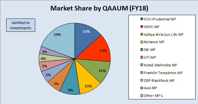HDFC had a total of Live Accounts of 81 lakh as of FY18, and their Monthly Average AUM from individuals was 62.2% of their total MAAUM, compared to the industry average of 51.4%.